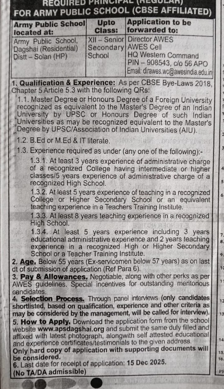 Army Public School, Dagshai has been ranked among the Top 10 Boarding Schools in a prestigious survey conducted by Education World Today: